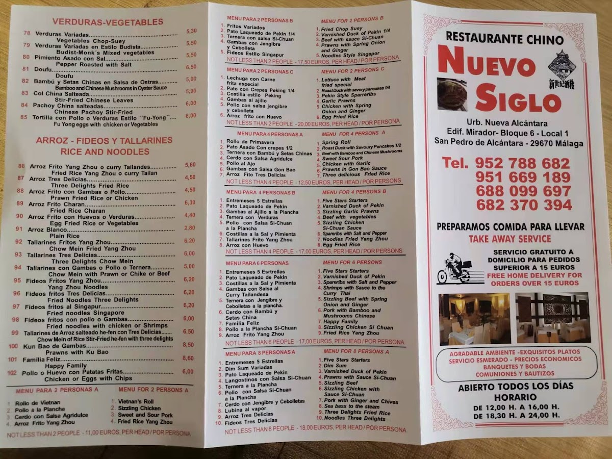 Introducing the menu at Nuevo Siglo, an exceptional Chinese dining experience located in the heart of Marbella, Spain. This restaurant has quickly become a favorite among locals and tourists alike for its authentic culinary offerings and welcoming atmosphere.